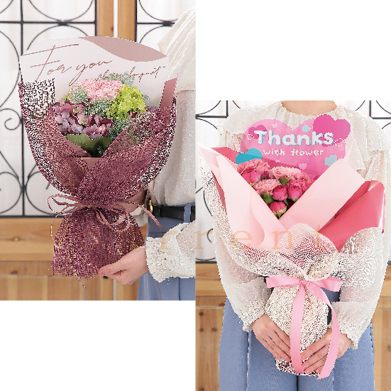 ブーケと一緒に巻いたり、鉢に挿して使用できる