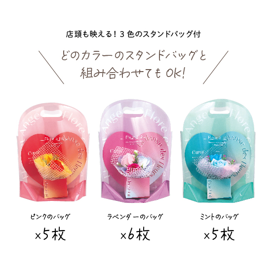 スタンドバッグ(3色)付で、どのブーケと組みあわせてもOK!