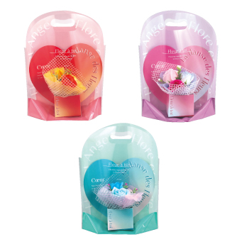 エレガントで美しいミニブーケ。ピンク・ブルー・レッドの3色展開。スタンドバッグ(3色)付です。